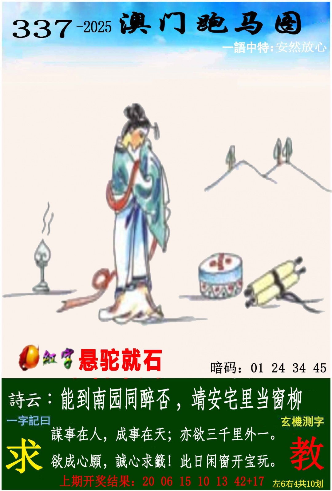 337期六码:03.11.10.25.30.43 |